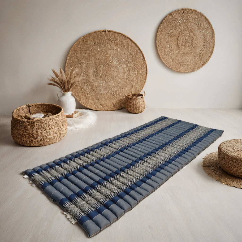 These traditional Thai kapok mattresses are very hard-wearing, so they can be used both indoors and outdoors, as a daybed or for your sleeping mattress. They are also a greener alternative for your camping mattress needs. Simply rolling up to fit in the car or campervan when not in use. Roll-up Thai mattress also comes in handy for a sleepover when friends come to visit.